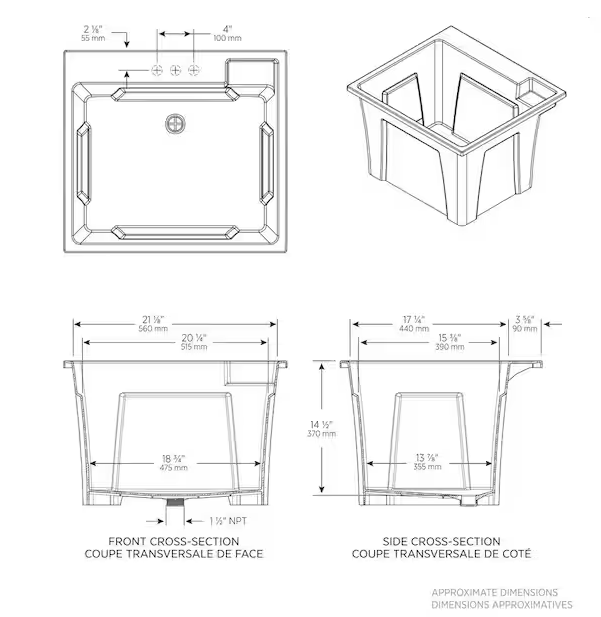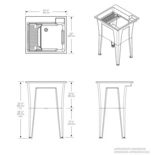 24 in. x 22 in. Black Freestanding Utility/Laundry Sink with 2-Hdl Pullout Faucet and Installation Kit